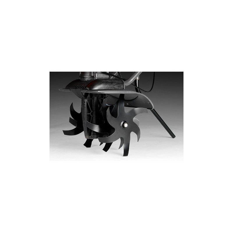 Usuwanie chwastów z rabat za pomocą narzędzia do odchwaszczania.