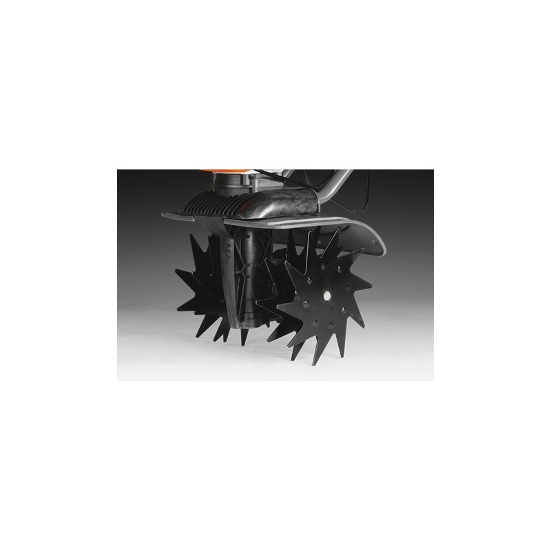 Przystawka skaryfikująca służy do robienia otworów w trawniku, aby powietrze, woda i nawóz mogły łatwiej wniknąć w glebę.