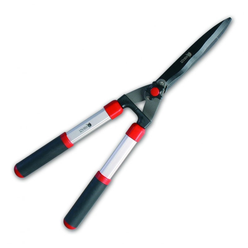 Nożyce do żywopłotu KM-30. Faliste ostrza o długości 23 cm.