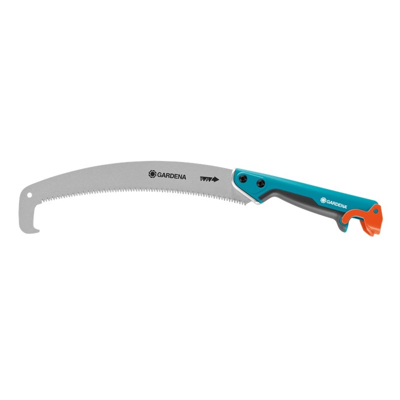 W celu usunięcia gałęzi położonych wysoko można zastosować trzonek teleskopowy, który zwiększa zasięg do 5 m. Wystarczy zamocować piłę na trzonku. Zamek zabezpieczający na trzonku gwarantuje pewne połączenie z narzędziem. Impulsowo hartowane uzębienie z potrójnym szlifem gwarantuje bezpieczne cięcie. Specjalna powłoka na powierzchni ostrza chroni je skutecznie przed korozją. Piła nie wysuwa się z ręki podczas ruchu „do siebie” dzięki zastosowaniu elementów antypoślizgowych w konstrukcji uchwytu oraz specjalnemu ogranicznikowi na jego końcu. Z przodu brzeszczotu znajduje się hak, który ułatwia usuwanie odciętych gałęzi. Uchwyt do zawieszenia i osłona na brzeszczot, która gwarantuje bezpieczne przechowywanie piły. Gwarancja na okres 25 lat.