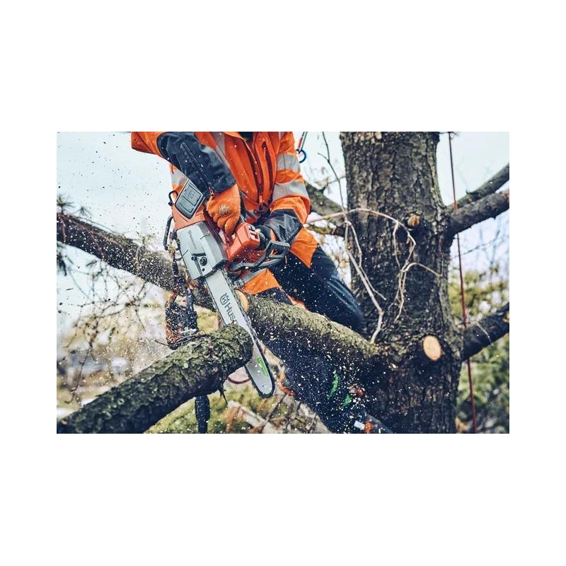 Husqvarna T542i XP® G to pierwsza na świecie akumulatorowa pilarka łańcuchowa z górnym uchwytem, wyposażona w sprzęgło i ogrzewanie uchwytu, zapewniająca doskonałą wydajność i lepszą przyczepność w zimie. Ta wydajna maszyna z górnym uchwytem, zasilana akumulatorem 36 V, jest wysoce wydajnym narzędziem dla profesjonalnych wspinaczy na drzewa, pracujących w zimnych i wilgotnych warunkach pogodowych. Sprzęgło zapewnia kontrolę i moc jak w przypadku maszyny spalinowej, ze wszystkimi zaletami bezprzewodowego napędu elektrycznego. Ogrzewanie uchwytu utrzymuje dłonie w cieple, a rękawice są suche.