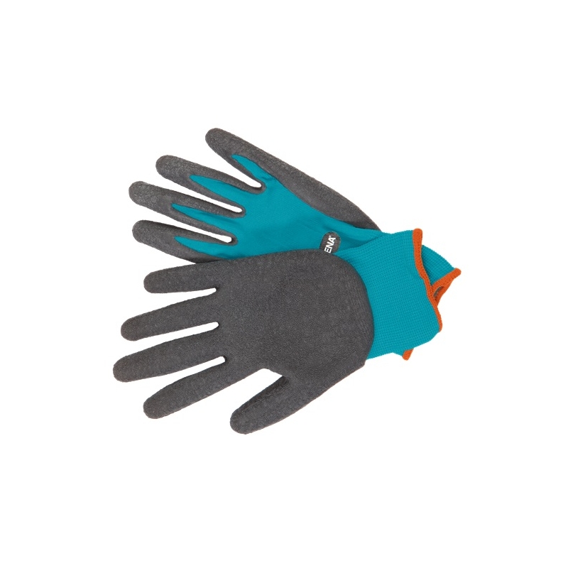 Przy szczególnie ciężkich pracach ogrodowych wykonywanych w środowisku wilgotnym lub mokrym, rękawice do prac pielęgnacyjnych GARDENA zapewniają szczególną ochronę. Trwała i wodoodporna powłoka lateksowa w części chwytnej oraz palcach poprawia komfort użytkowania rękawic.