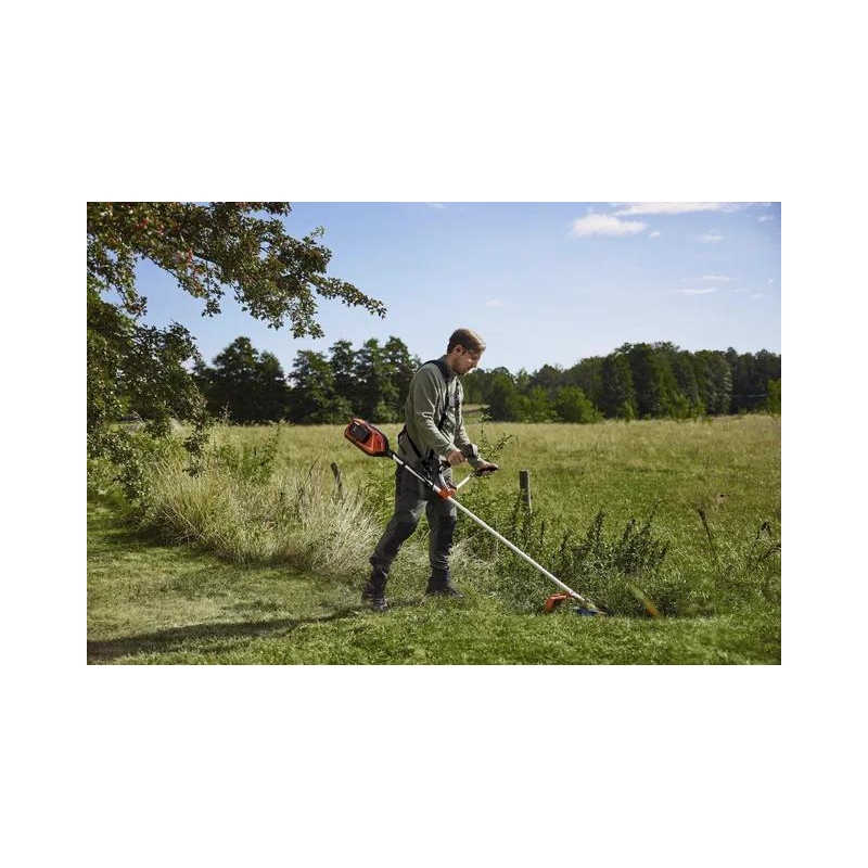 Profesjonalna jakość i wydajność tej wykaszarki akumulatorowej skutecznie radzi sobie z gęstą trawą i lekkimi zaroślami przy każdej pogodzie. Bezszczotkowy silnik E-torq posiada aktywne chłodzenie dla maksymalnej wydajności i jest montowany z tyłu dla optymalnego wyważenia i ochrony silnika. Ergonomiczny uchwyt, cyfrowy interfejs użytkownika, uprząż premium i miękki uchwyt zwiększają komfort i wygodę. Dołączona głowica żyłkowa, osłona Combi Guard i metalowy nóż do trawy zapewniają doskonałe rezultaty za każdym razem. Jest częścią systemu akumulatorów Husqvarna BLi-X 36 V.